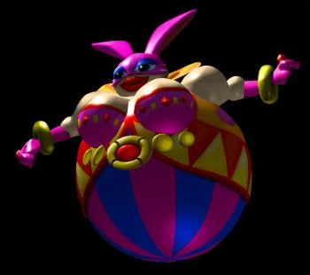 Awakers: In both games, if the Visitors don't dualize with NiGHTS quickly, they will be chased by awakers, who are gonna make them wake up if they get the Visitors, causing a game over. In the first game, the Awaker is a clock inside an eggshell called Alarm Egg. In the second game they are just called Awakers and they ghost-like creatures who do alarm clock noises. They are neutral creatures.