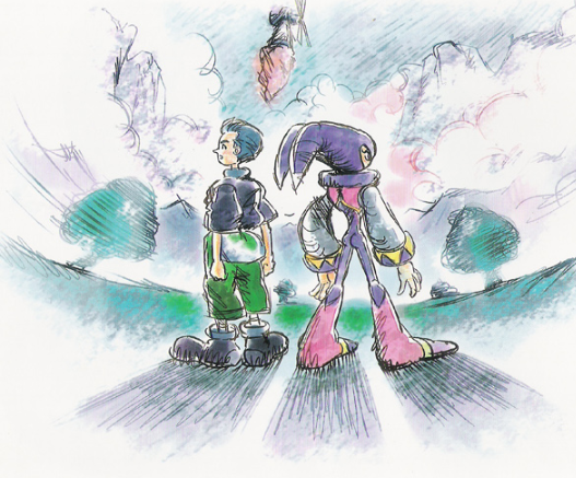 At the end of the game, Elliot and Claris are transported to Spring Valley after defeating Wizeman (though, only in the secret ending). When Elliot is transported to Spring Valley, he looks around and sights Claris fainted. Once he reaches her, Elliot carries Claris on his arms and leaves her under a tree. Shortly after, Elliot starts fading away because he is waking up. As soon as Claris wakes up, Elliot turns his back to her and disappears.
